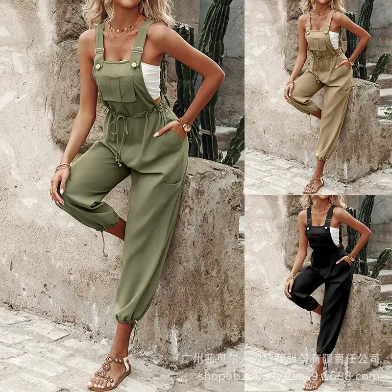 אוברול קיץ לנשים | אוברול קליל עם כתפיות | בגדי נשים 2025 | אוברול אופנתי יומיומי | אוברול עם גומי במותן