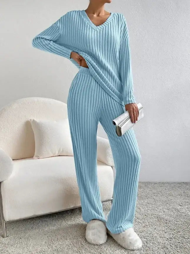 חליפת שתי חלקים מבד סריג רך, אלסטי ונעים שמעניק תחושת ליטוף בעור — עם מראה מחוטב ואופנתי.