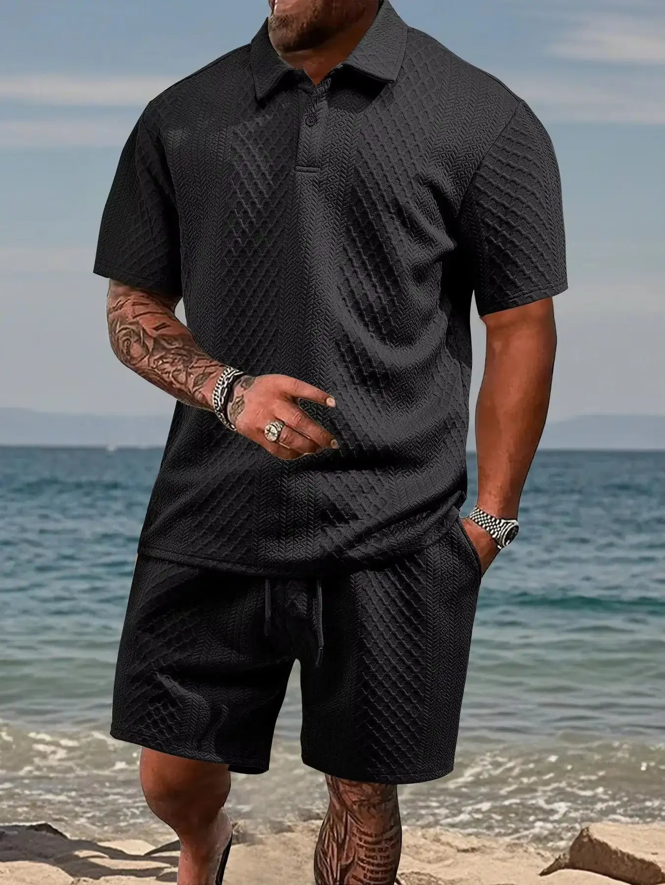 הבד נושם, רך ונעים על הגוף, עם גימורים מדויקים ומרקם עדין שמקפיץ את הלוק. מגיעה כסט של חולצה עם צווארון וכפתורים + מכנס קצר תואם עם גומי ושרוך – ללוק נקי, גברי ויוקרתי.