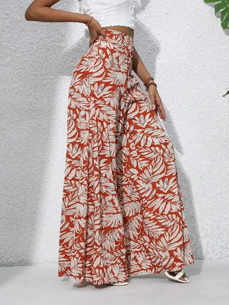 הוסיפי טאץ' בוהו-שיק לכל לוק עם מכנסי QPTP – מכנסיים בגזרה גבוהה ומתרחבת, עם הדפס עלים שמקפיץ כל הופעה.